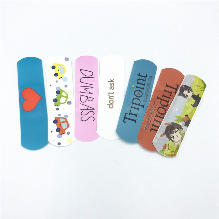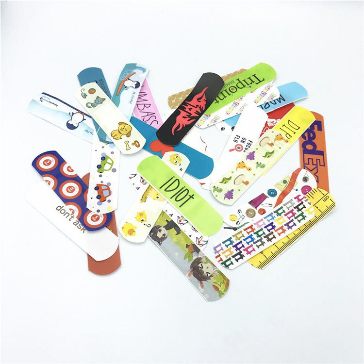Plester desainer kartun bentuk khusus, sing umum dikenal minangka band-aid elastis germicidal, minangka salah sawijining pasokan medis darurat sing paling umum digunakake ing urip wong. Band-aid utamané dumadi saka kain warata lan pad absorbent. Iki digunakake kanggo hemostasis lan perlindungan kreatif. Miturut kabutuhan sing beda-beda, ana macem-macem bentuk band-Aids sing bisa digunakake kanggo pasien.