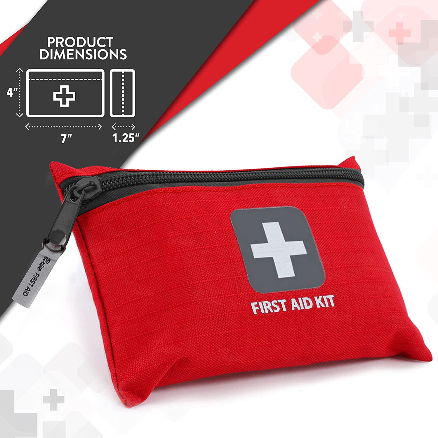 Desain – Kasedhiya ing tas nilon poliester rip-stop 600D abang. Entheng, kompak lan isih ngemot kabeh sing dibutuhake kanggo acara sing ora dikarepake. Cocog banget ing dompet, tas popok, tas kipas. Kit P3K iki dawane 7,0 inci X 4,0 inci lebar X 2,0 inci tebal. Boboté kira-kira 0,3 lbs. Kit sepindah 1 iki entheng, cilik lan awet.